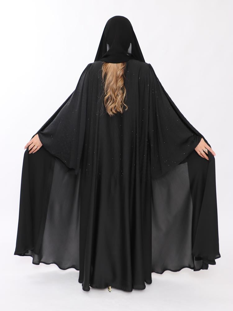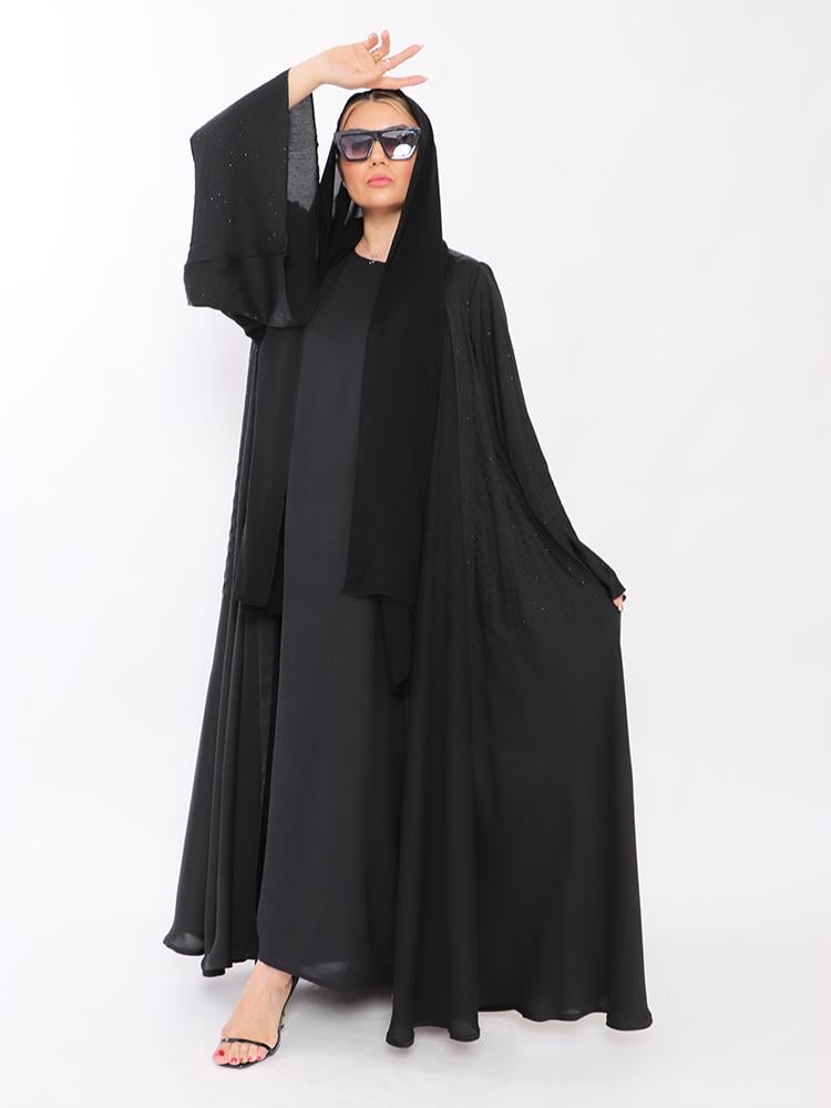 عبايه دبل كلوش شغل كريستال لنصف العبايه قماش حراير خفيف يهبل
